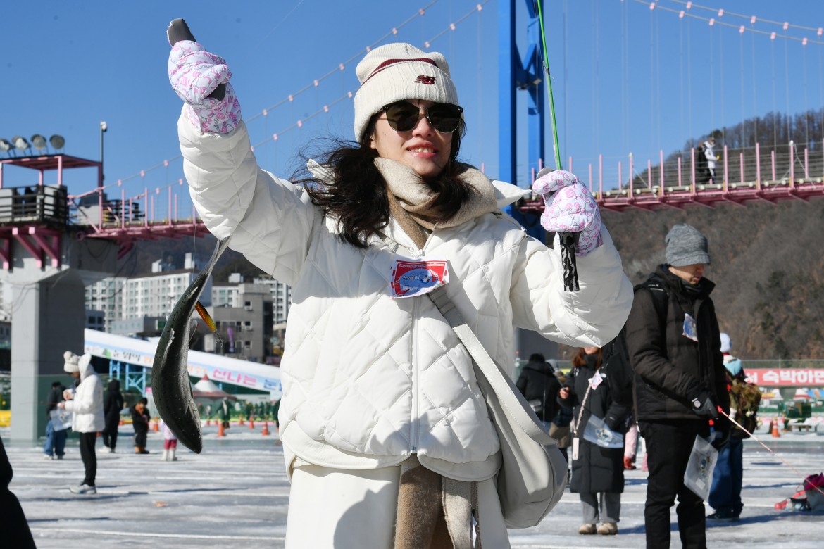 2026 얼음나라 화천산천어축제가 막바지를 향하는 가운데, 29일 축제장을 찾은 외국인 관광객들이 산천어 얼음낚시를 즐기고 있다. 올해도 관광객 100만명을 넘어선 화천산천어축제는 이번주 일요일인 2월1일, 23일 간의 여정을 마치고 폐막한다.