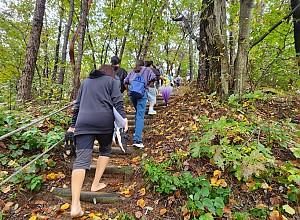 △▽ 국사봉을 맨발로 오르는 축제 참가자들△가을비로 촉촉히 젖은 국사봉 솔숲길을 맨발로 가볍게 오르고 있는 참가자들△▽ 자연을 느끼면서 천천히 걷고 숨을 깊게 들이 마시고 내쉬세요…